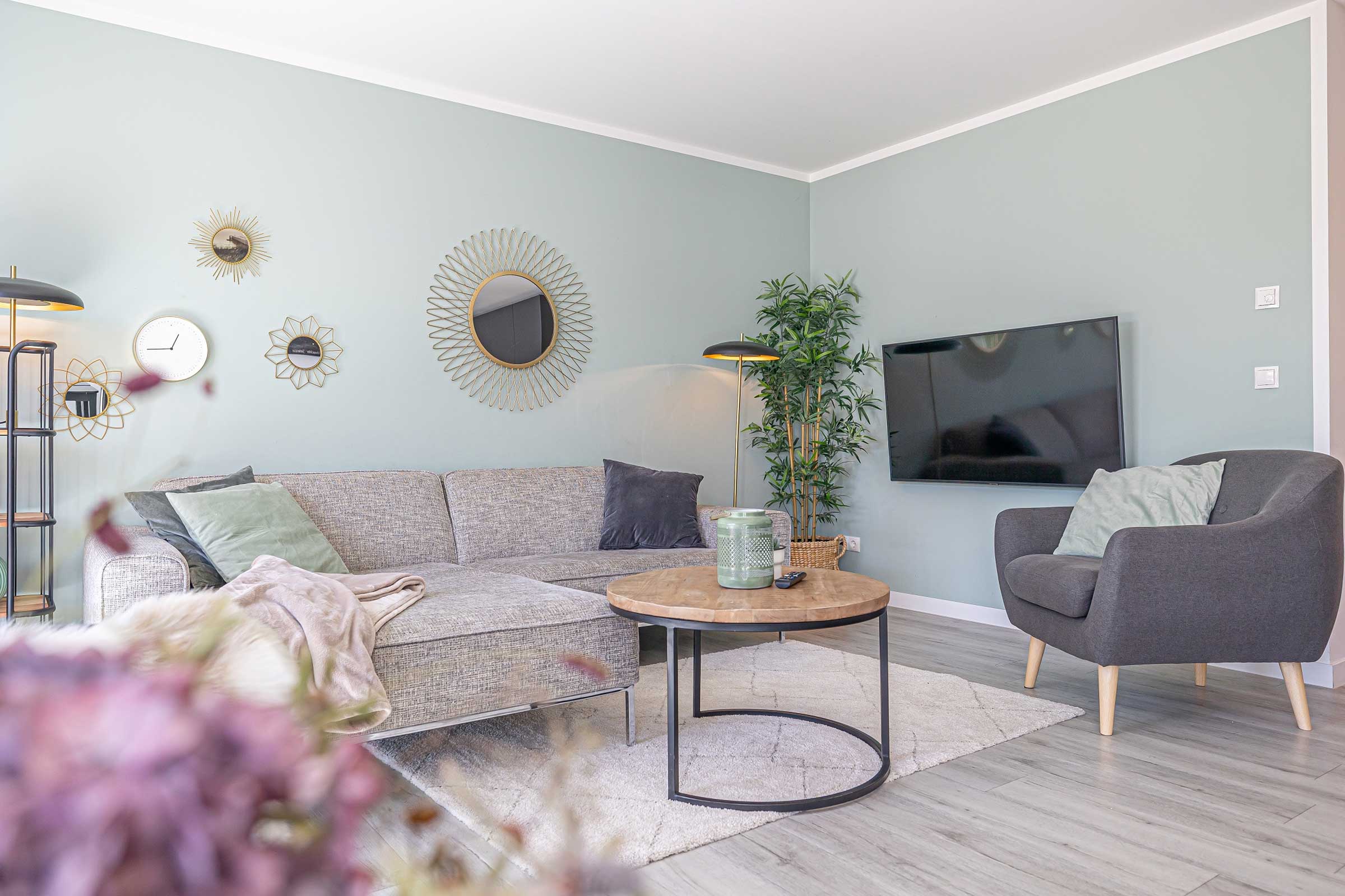 Der lichtdurchflutete Wohnbereich lädt zu gemütlichen Abenden ein, während die moderne Küche alles bereithält, um gemeinsam zu kochen. In den Schlafzimmern mit Balkon findet jeder seinen Rückzugsort, und im Garten können die Kinder ungestört spielen, während die Erwachsenen den Grill anwerfen. Ein großes Duschbad im Erdgeschoss mit WC sowie ein extra WC gegenüber der Schlafzimmer schaffen Privatsphäre auch mit 5 Personen.