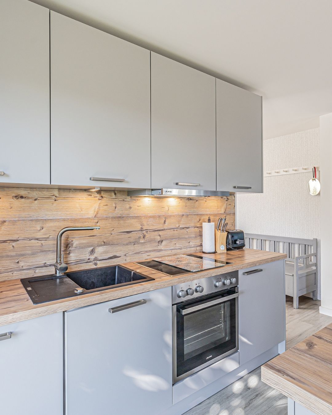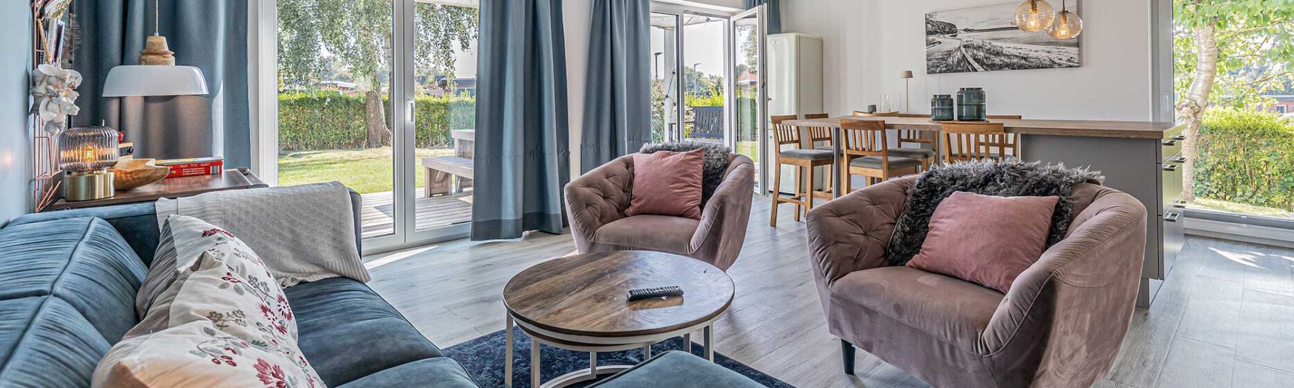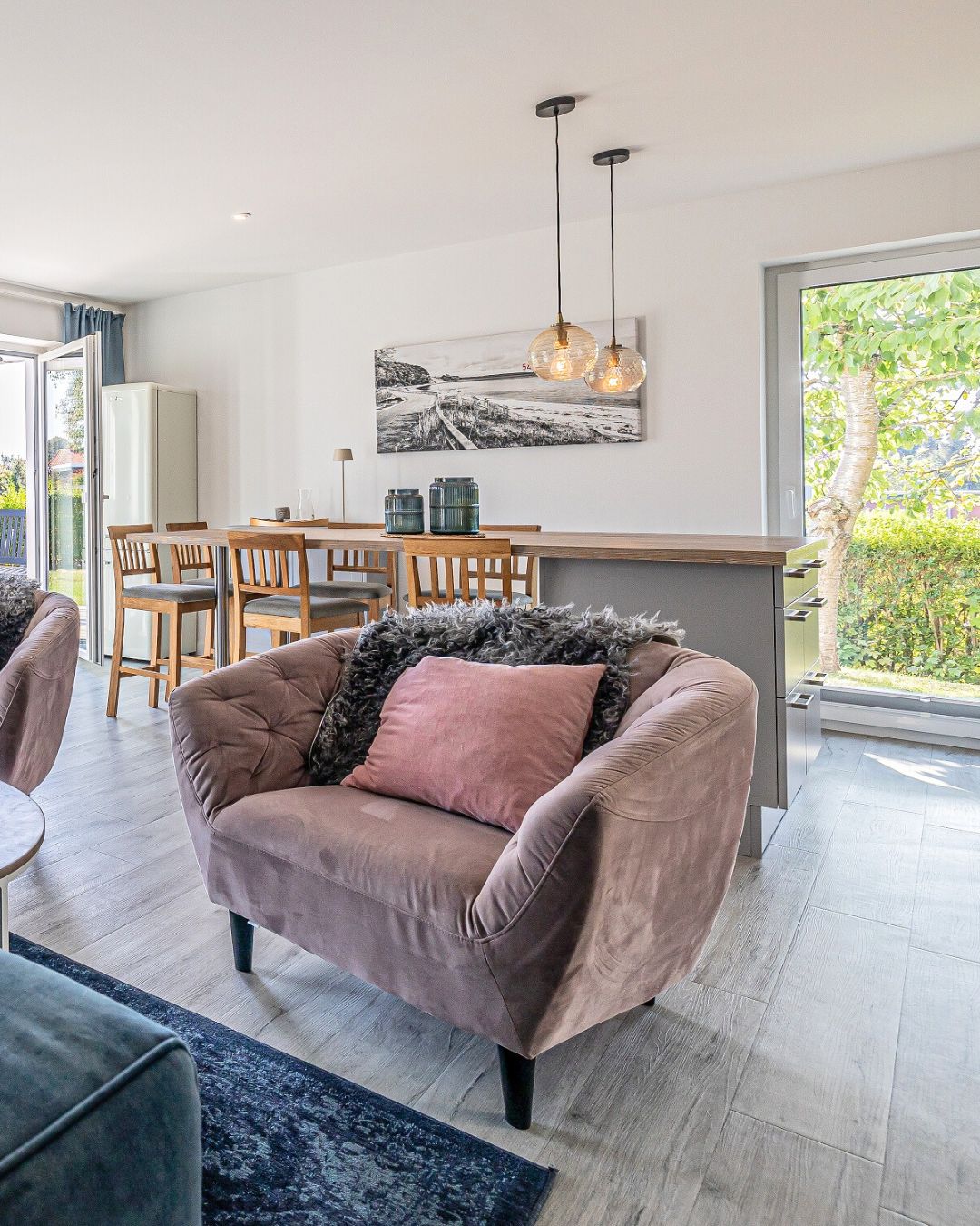 Auf rund 75 Quadratmetern findet ihr alles, was ihr für einen entspannten Urlaub braucht: ein großzügiger Wohn-Essbereich mit viel Licht, eine voll ausgestattete Küche für gemeinsame Mahlzeiten und ein sonniges Schlafzimmer, das euch erholsame Nächte schenkt.