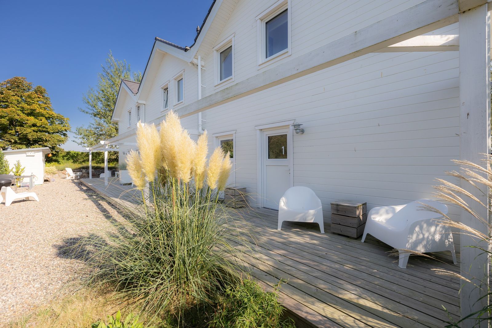 - Ausstattungen: Ceranfeld und Backofen, Föhn, Fußbodenheizung, Gartenmöbel und Grill, Hochstuhl, in-ground Trampolin, Kinderreisebett, Parkplatz, Safe, Waschmaschine und Trockner, Wlan